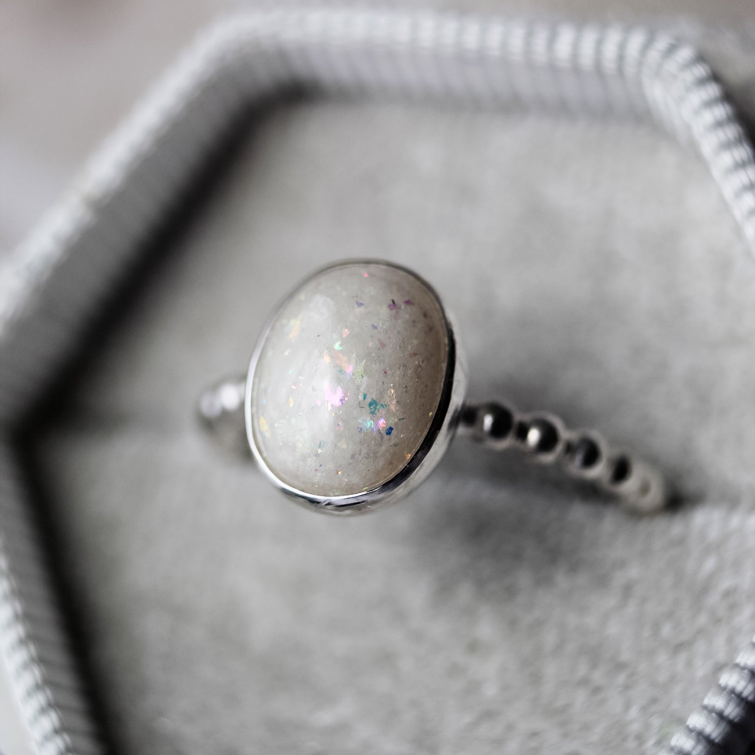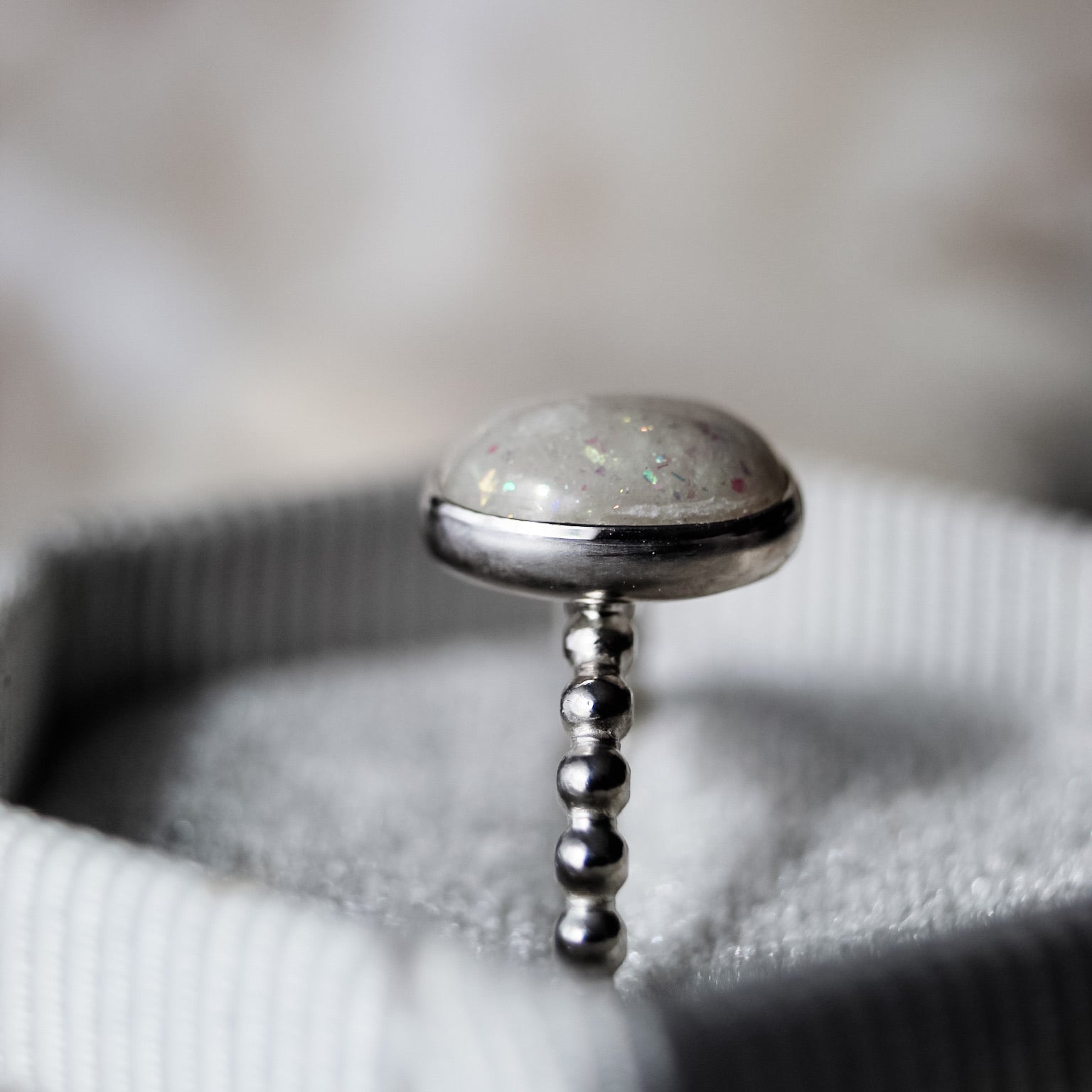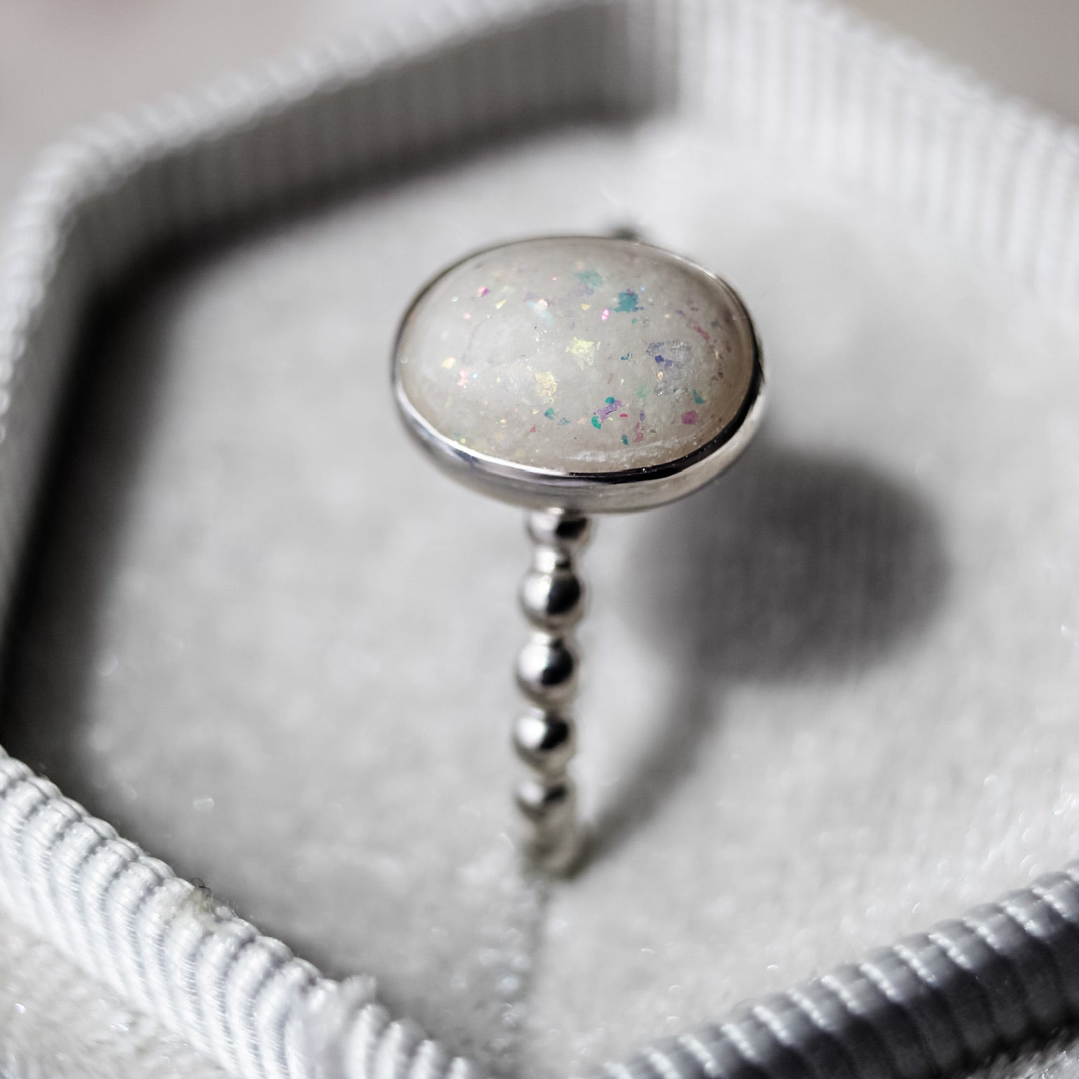 This ring features a delicate 10x8mm oval-shaped design, a minimalist yet sophisticated aesthetic. It’s an ideal choice for those who appreciate elegance in its purest form and can be paired with breastmilk, ashes, umbilical Cord and more.